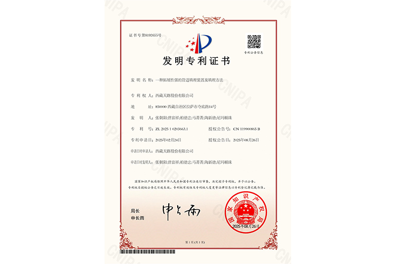 發(fā)明證書:一種拓展性強的管道填埋裝置及填埋方法 -
