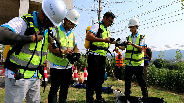 佩戴正壓式呼吸器準備進入管廊內(nèi)救援