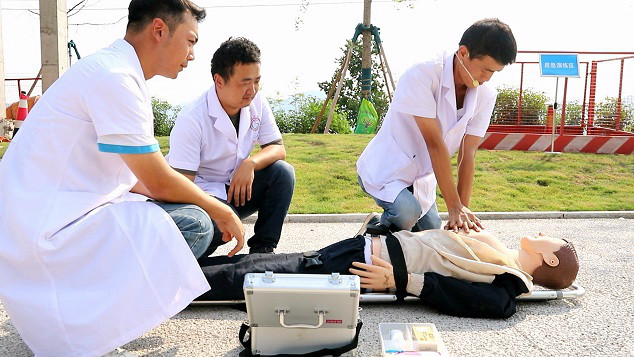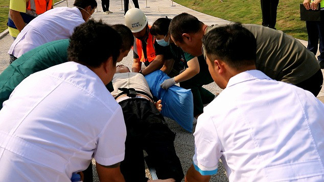 醫(yī)院救護車到達救援現(xiàn)場,將傷者抬至救護車上,前往醫(yī)院進一步治療
